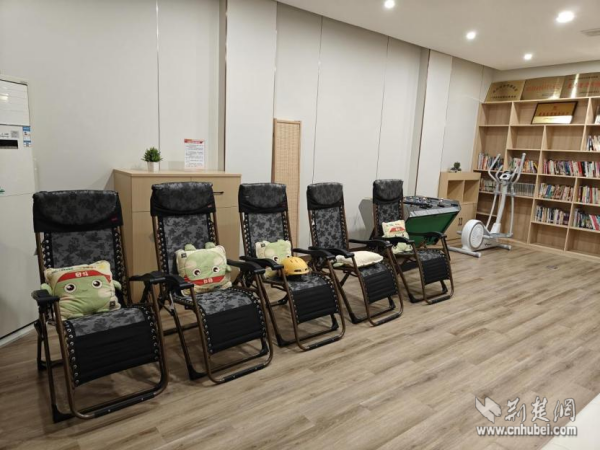 走進(jìn)這個330平方米的升級版驛站,變化隨處可見。這里不僅有基礎(chǔ)的微波爐、冰箱、沙發(fā)等,更添置了共享淋浴間、聽書機(jī)、直飲機(jī)、空調(diào)等。曾經(jīng)的后廳,如今被打造成一個多功能“潮玩空間”——午休時間,拉上窗簾,這里是配備了舒適躺椅的靜謐午睡室;工作之余,這里又變身為熱鬧的“社交俱樂部”,大家可以一起看電視、玩桌游,徹底放松身心。