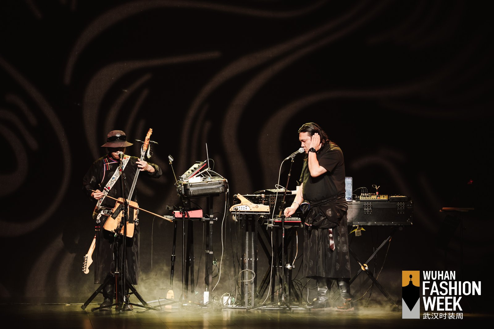 陳宇攜手Taiga樂隊,把錫林郭勒草原的晨霧、馬頭琴與電子節(jié)拍轉(zhuǎn)化成可行走的時裝音景。可持續(xù)植物素皮、流蘇與繩結(jié)形成呼應(yīng),讓游牧精神在當(dāng)代廓形中保持自由。