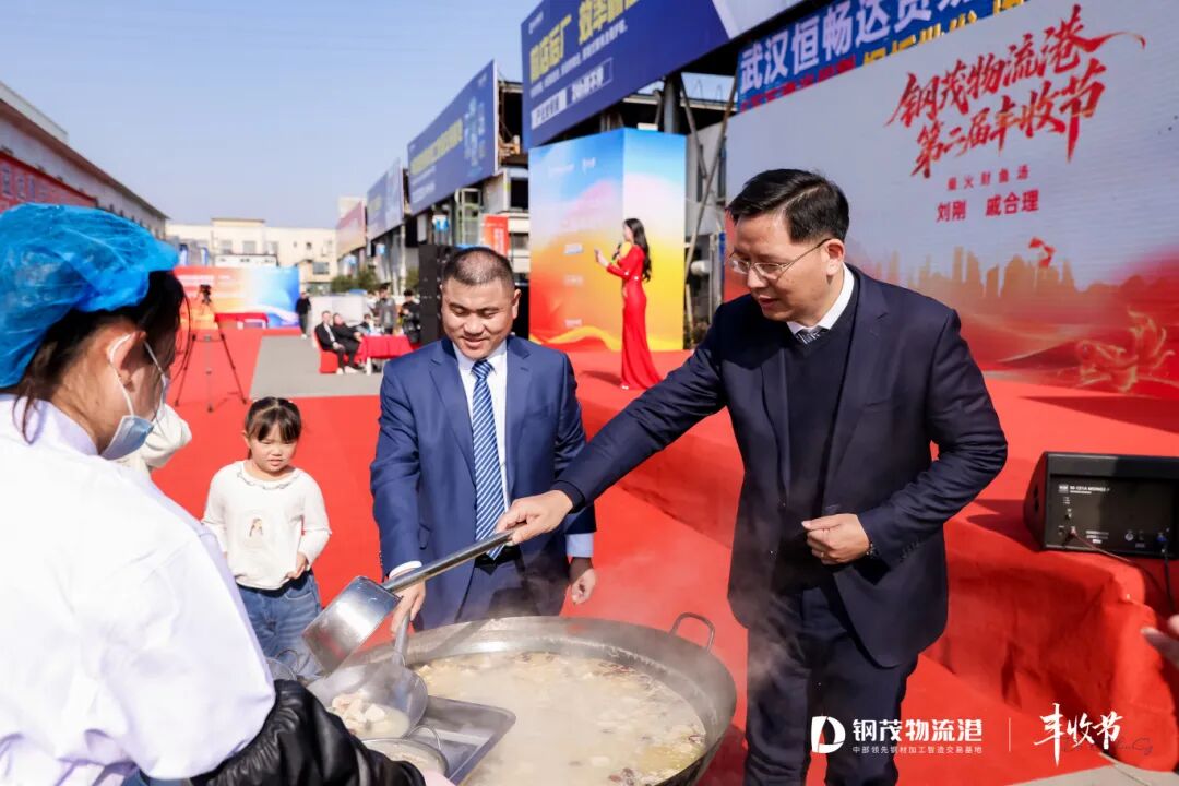 發(fā)布會結束后,第二屆“豐收節(jié)”溫馨開啟。獨具地方特色的宴席氛圍,展現(xiàn)了鋼茂物流港與商戶之間的深厚情誼。德成控股集團董事長徐小波致以開場誠摯歡迎,德成控股集團執(zhí)行總裁劉剛和鋼茂物流港總經(jīng)理戚合理分送寓意吉祥的財魚湯,將現(xiàn)場氣氛推向高潮。精彩紛呈的文藝表演,更增添了喜慶祥和的節(jié)日氛圍。