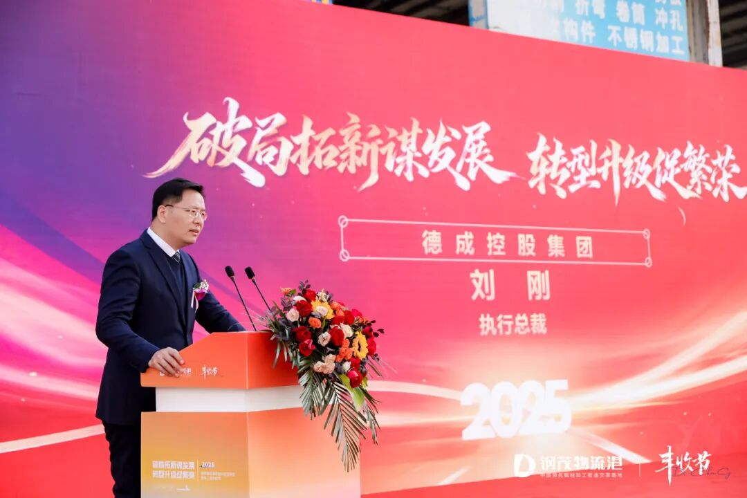 當日上午9時,活動拉開序幕。德成控股集團執(zhí)行總裁劉剛致辭,回顧園區(qū)十年發(fā)展歷程,闡述從“傳統(tǒng)市場”到“智造引領”的戰(zhàn)略轉變。湖北省工商聯(lián)、武漢市工商聯(lián)、江夏區(qū)等政府代表應邀出席并致辭,對鋼茂物流港的轉型路徑與產(chǎn)業(yè)貢獻予以高度認可。