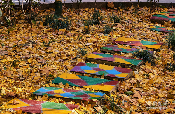 30余名黨員與社區(qū)居民攜手執(zhí)筆,在社區(qū)能人的指導(dǎo)下,依據(jù)設(shè)計(jì)圖稿細(xì)心勾勒線條,精心調(diào)配赭石、石青、石綠等傳統(tǒng)礦物色彩,悉心填充花瓣、枝葉。草坪里原本素樸的地磚漸漸綻放出繽紛圖景:象征革命精神的紅色印記、勾勒武昌古城風(fēng)貌的文化符號(hào),以及依循“十二花令”鋪陳的水仙、桃花、菊花等時(shí)令花卉與梅蘭竹菊的清雅風(fēng)骨藝術(shù)化呈現(xiàn)。