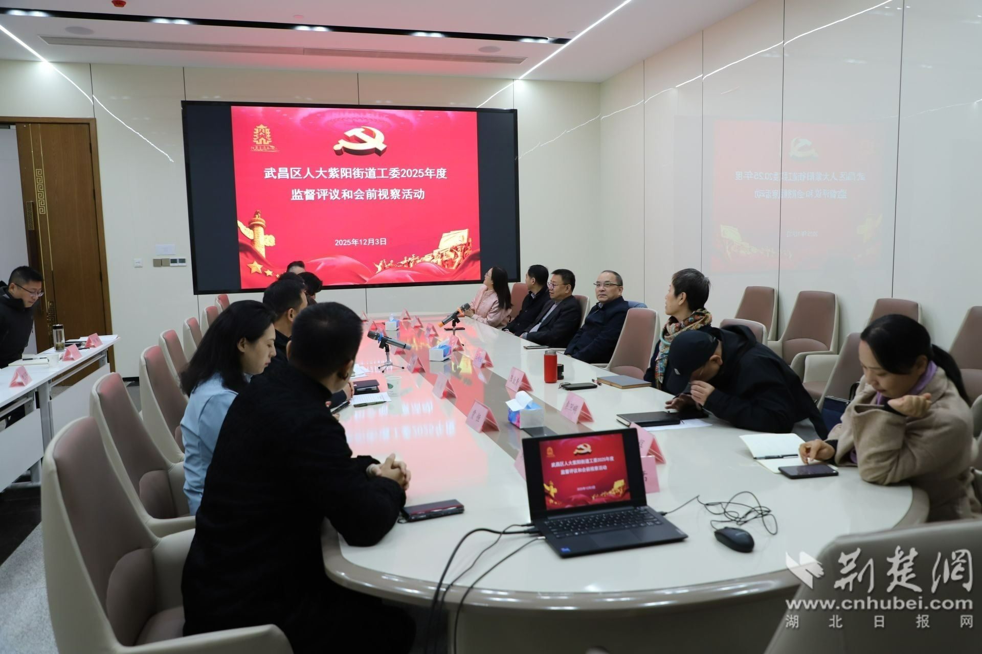 荊楚網(wǎng)(湖北日報(bào)網(wǎng))訊(通訊員 劉洋)12月3日,武昌區(qū)紫陽街道開展“活化歷史文脈·賦能武昌灣高質(zhì)量建設(shè)”專題會前視察活動。武昌區(qū)人大常委會黨組書記、主任胡太榮帶隊(duì),省、市、區(qū)三級人大代表、政協(xié)委員及相關(guān)單位負(fù)責(zé)人參會,以實(shí)地視察、專題研討凝聚發(fā)展共識,共繪區(qū)域文旅融合與城市更新藍(lán)圖。