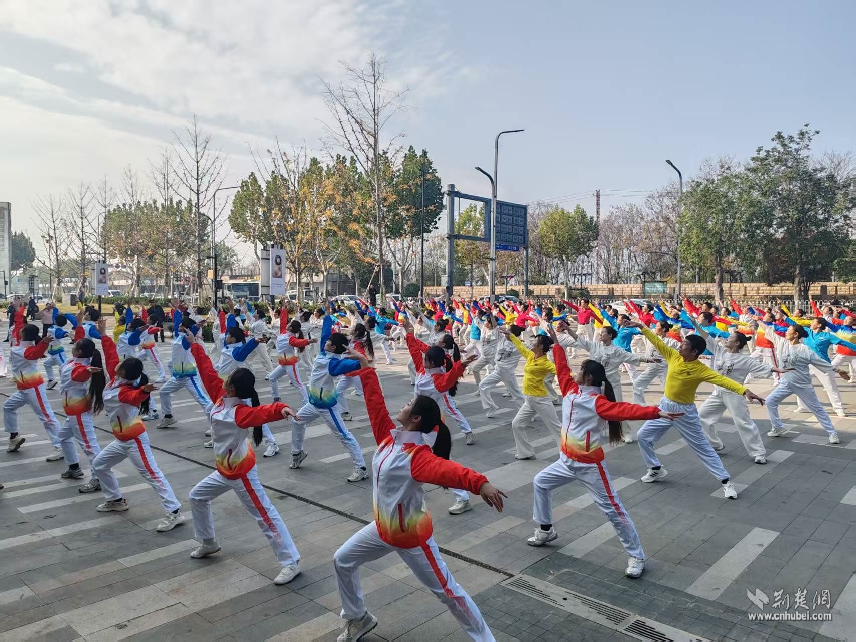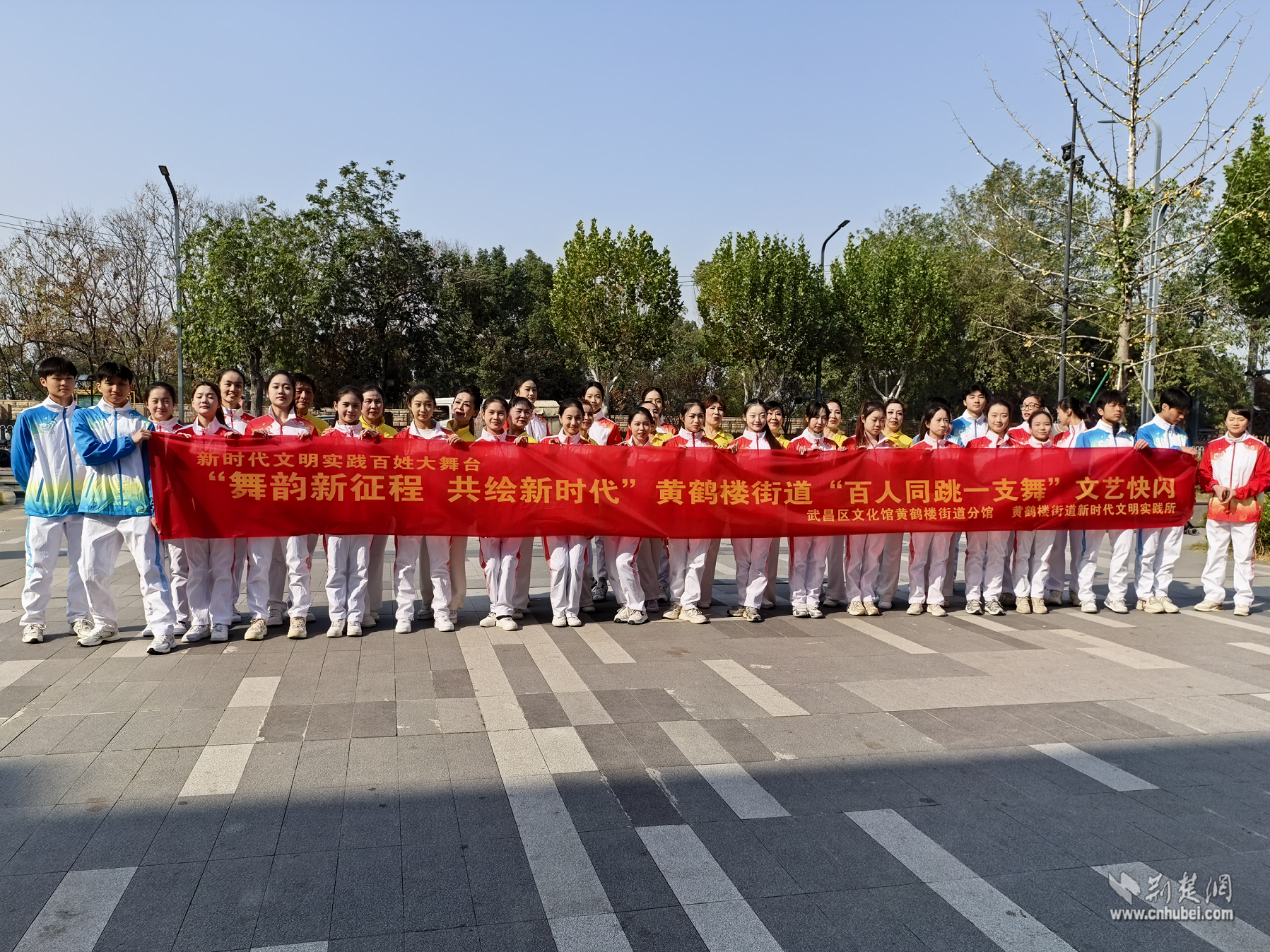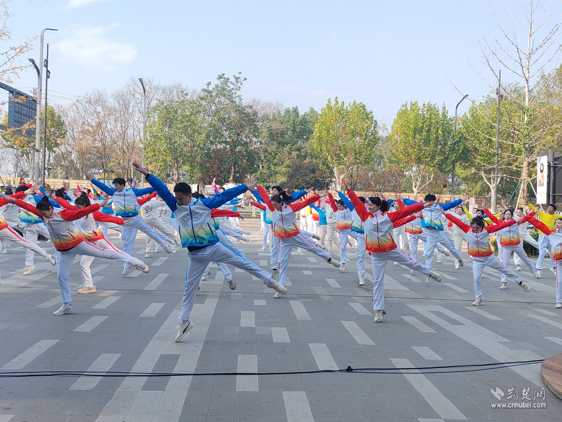 伴隨著氣勢恢宏的《領航》旋律響起,由武昌黃鶴之星文化驛站成員、轄區(qū)文藝團隊及武漢音樂學院學生組成的140人表演隊伍翩然起舞。舞者們身著亮麗服裝,步伐整齊有力,動作舒展昂揚,如一面面流動的旗幟,在冬日的陽光下?lián)]灑著自信與熱情。在武漢歌舞劇院許峰老師的現(xiàn)場帶領下,整場表演張弛有度、情感充沛,生動詮釋了新時代的朝氣與力量,贏得了在場觀眾陣陣掌聲與喝彩。