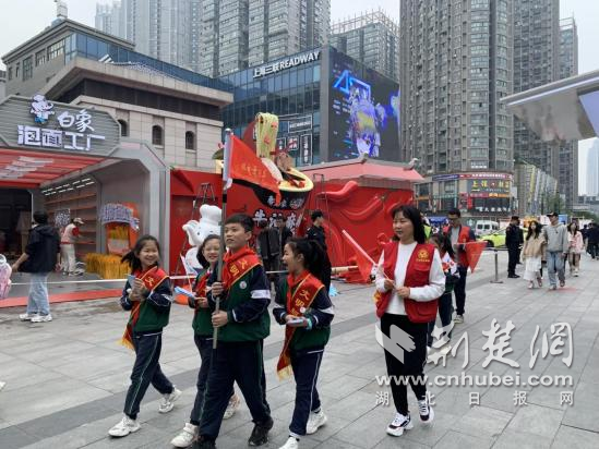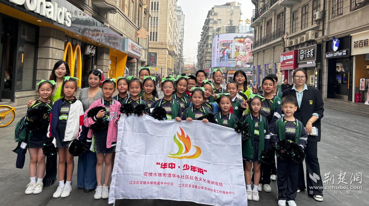 一群孩子站在老建筑前,用并不稚嫩的語(yǔ)氣講述城市的過(guò)往;他們談江漢關(guān)、談中山大道,也談這片街區(qū)如何一步步走到今天。聽(tīng)眾中有游客,有商戶,也有在這里生活了幾十年的老人。