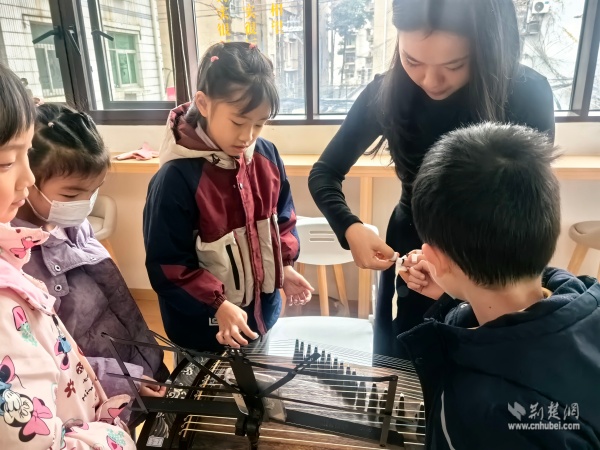 當(dāng)天上午,黃鶴書房?jī)?nèi)箏聲潺潺,以“琴潤(rùn)書香遇知音”為主題的古箏生活美學(xué)雅集在這里上演。二十余位居民齊聚一堂,在專業(yè)老師的帶領(lǐng)下,共同走進(jìn)古箏的悠遠(yuǎn)世界。