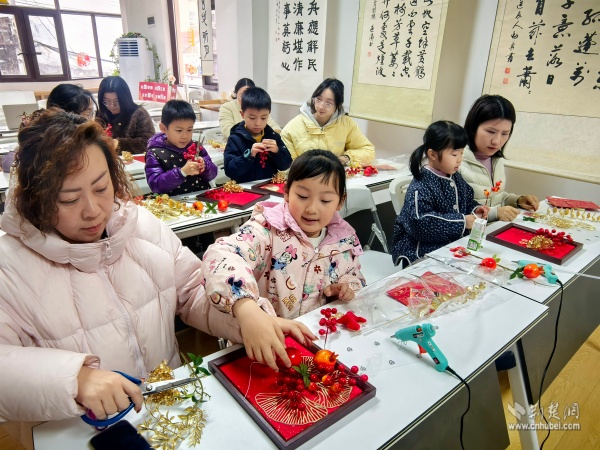 為迎接新春佳節(jié),傳承非遺手工技藝,“吉年添彩·手作年宵花畫框共創(chuàng)會(huì)”也在書房?jī)?nèi)熱烈展開?;顒?dòng)以“筆墨書香里尋年味,非遺手作中傳文脈”為主題,吸引了眾多親子家庭與手工愛(ài)好者參與。