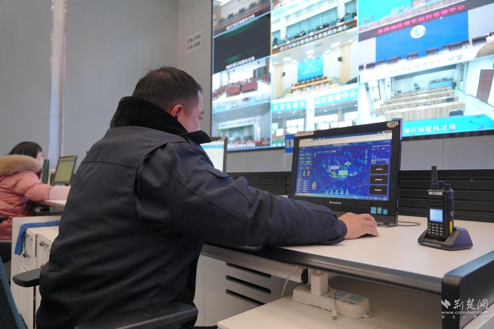 這是東西湖區(qū)本輪應對低溫雨雪冰凍天氣的指揮中樞。調(diào)度大廳內(nèi),一套新升級的融雪防凍智慧應用正在運行:天氣變化、人員物資、道路狀態(tài)在同一平臺集中呈現(xiàn),重點路段通過視頻輪巡實時監(jiān)控,必要時可啟用無人機輔助巡查,實現(xiàn)對主干道路、橋梁、學校和商圈周邊的動態(tài)掌控。