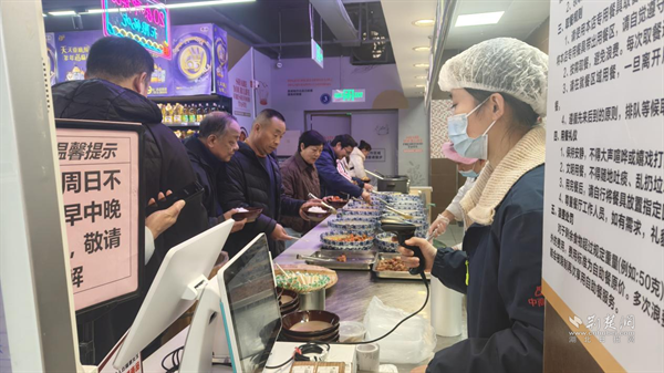 荊楚網(wǎng)(湖北日報(bào)網(wǎng))訊(記者 李燕 通訊員 羅嘉柯)“現(xiàn)在中午不用自己開火了,9塊9就能吃上三四個熱菜,還能和老鄰居聊天,比家里還熱鬧! ”70歲的王奶奶邊說邊跟著隊(duì)伍取餐。家長里短的閑談聲混著檔口的飯菜香,讓武昌區(qū)南湖街道的中商超市“幸福食堂”滿是煙火氣。