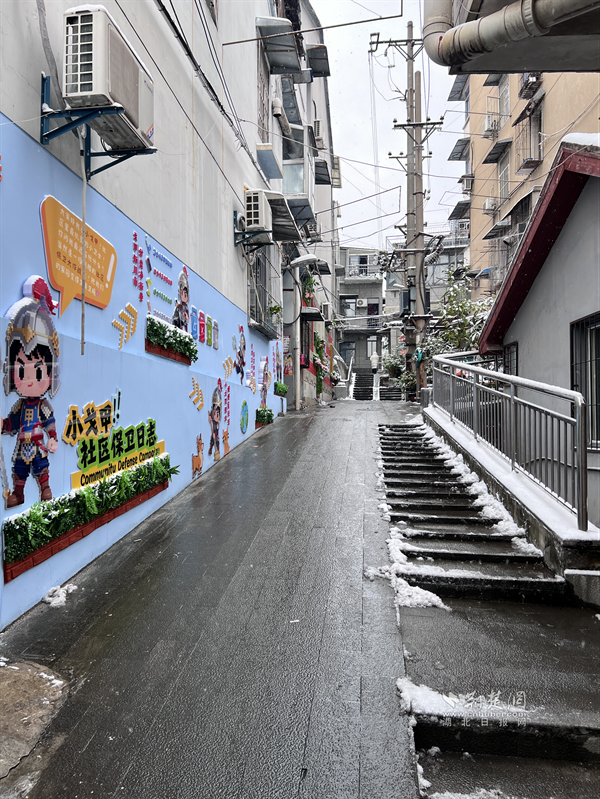 20日清晨,糧道街胭脂路部分路段冰雪堆積,步行、車行存在安全隱患。沿街商戶主動(dòng)設(shè)立板凳、雪糕筒提醒路人繞行,并拿起掃把清掃路邊積雪,方便路人安全通過(guò)。“這是武漢的第一場(chǎng)雪,雖然很美,但路滑容易摔跤,我們?cè)琰c(diǎn)把門口掃干凈,大家走路就放心了?!币晃簧虘衾习逡贿吂讱庖贿呎f(shuō)道。這一把把掃帚不僅掃去了積雪,更暖了人心,商戶們用最樸實(shí)的行動(dòng),在寒冬街頭筑起了一道溫暖的安全防線,展現(xiàn)了“社區(qū)是我家”的主人翁精神。