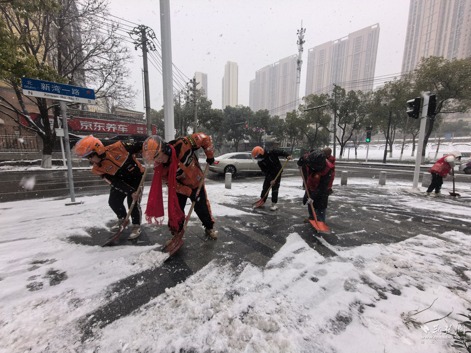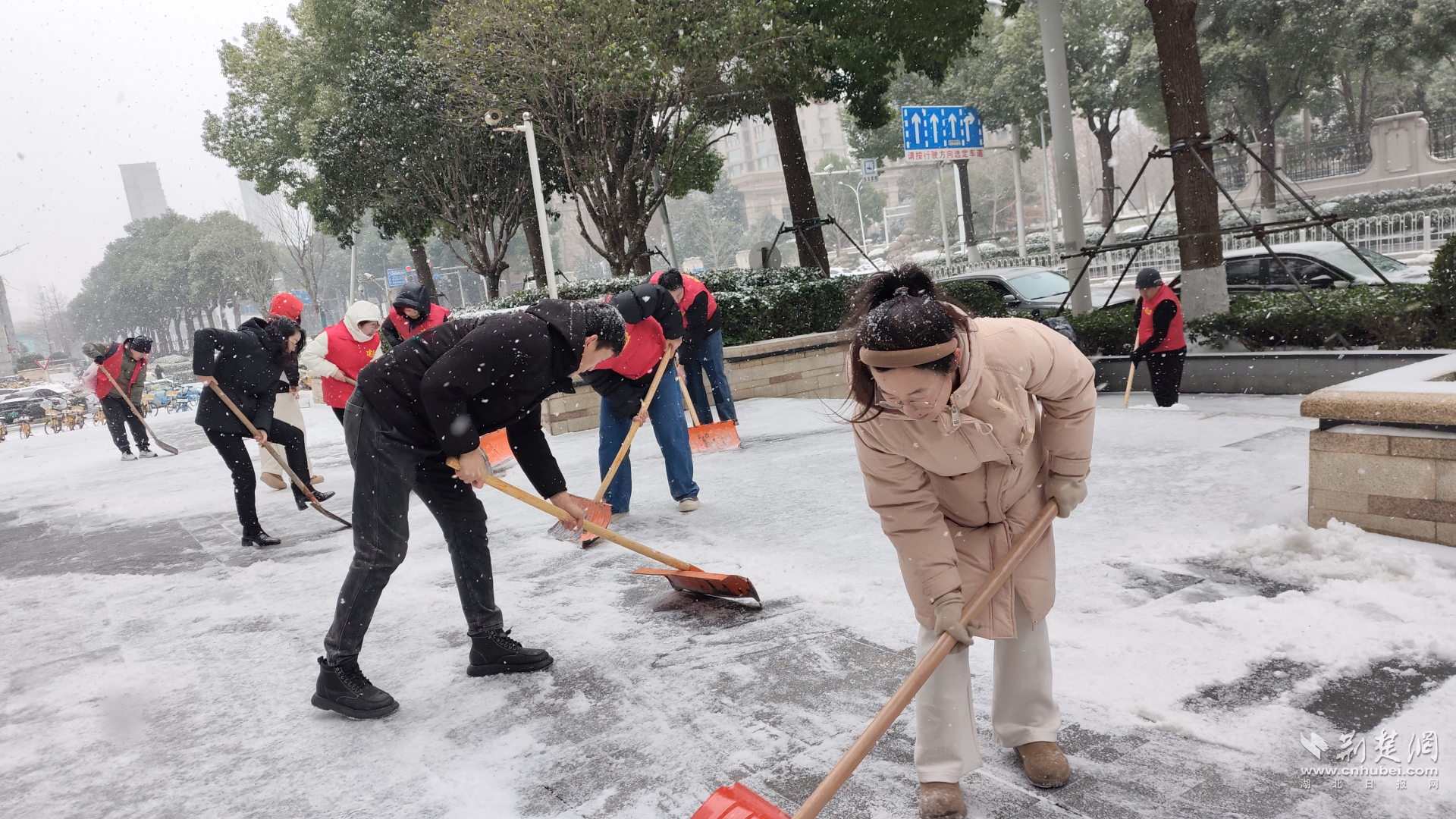 萬松街道則積極動員樓宇集聚區(qū)新興領域黨組織、商鋪和流動黨員組建志愿服務隊伍,開展清雪除冰行動。江漢人力資源服務產業(yè)集聚區(qū)黨委發(fā)出倡議,10余家企業(yè)、100余名職工志愿者迅速響應。從商務樓宇到中央商務區(qū)地鐵沿線,清雪行動全面鋪開,為早晚高峰通行贏得時間。