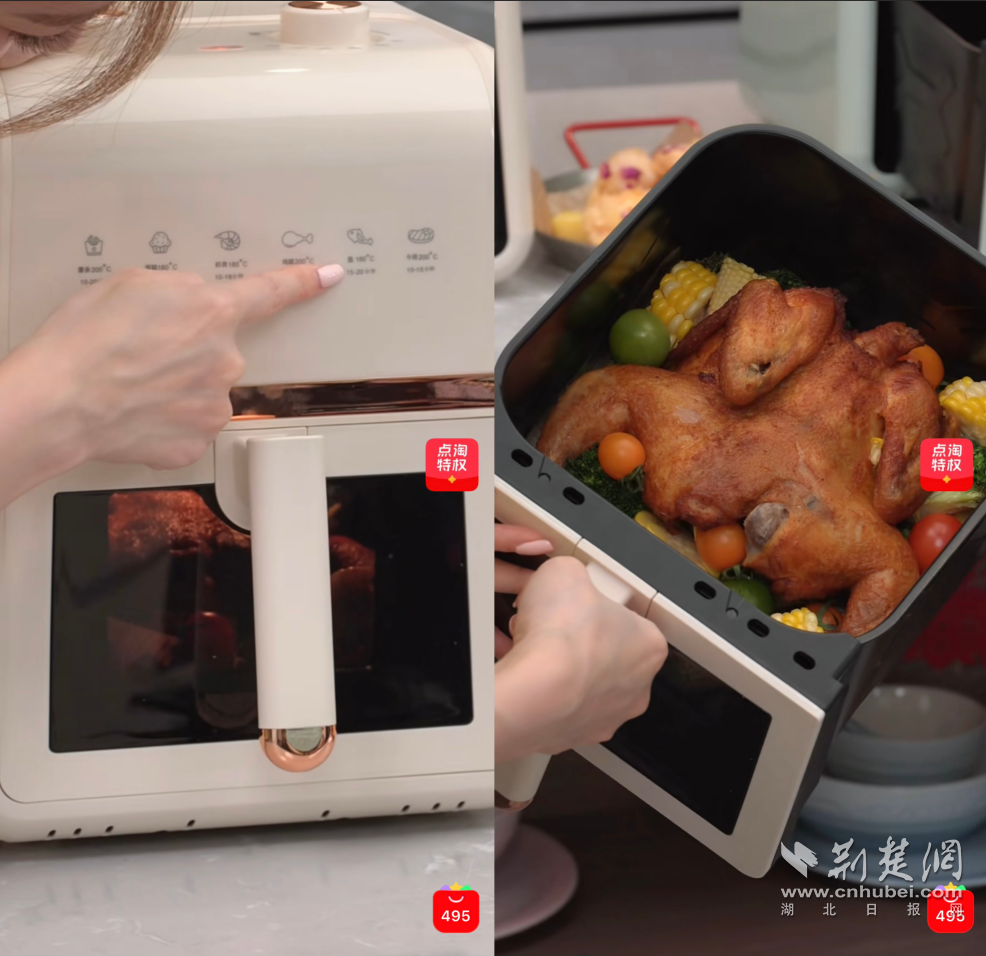 在李佳琦直播間里,觀眾經常能看到滿滿一桌由小家電完成的菜肴,“還以為誤點進了美食頻道”。主播現(xiàn)場演示用空氣炸鍋15分鐘做出烤紅薯,用蒸煮一體鍋同時搞定葷菜素菜,用多功能料理機一鍵蒸魚。