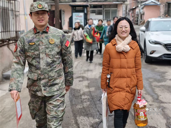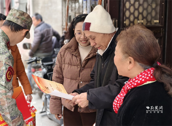 荊楚網(wǎng)(湖北日報網(wǎng))訊(通訊員 蘇楚雄 鐘霓 游薇 侯本瑞)1月29日,武昌區(qū)楊園街道電力新村社區(qū)鑼鼓聲響、熱鬧非凡。街道人武部、退役軍人服務站和社區(qū)工作人員組成“報喜小隊”為現(xiàn)役軍人家屬送去子女在部隊榮獲的“四有”優(yōu)秀學員榮譽證書,并送上慰問物資,傳遞對軍屬的崇高敬意和誠摯關懷。