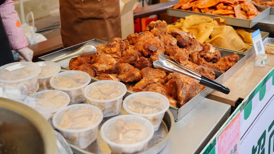 作為活動(dòng)的重要組成部分,特色年貨市集“滿倉吉市”匯集了滿滿的煙火氣與本土特色。黃陂三鮮、鴨子煲、清湯鵝等地道美食香氣四溢,喚醒味蕾記憶。本地農(nóng)產(chǎn)品等特色攤位也一字排開,好不熱鬧。朝陽村的豆絲攤位前早早排起了長隊(duì)。朝陽村黨支部書記、村委會(huì)主任熊偉介紹:“今天我們準(zhǔn)備了200斤米漿,現(xiàn)場制作近千張豆絲免費(fèi)供游客品嘗,既讓大家嘗到家鄉(xiāng)味,也帶動(dòng)了村里油、土雞、糯米等農(nóng)副產(chǎn)品的銷售?!?/p>