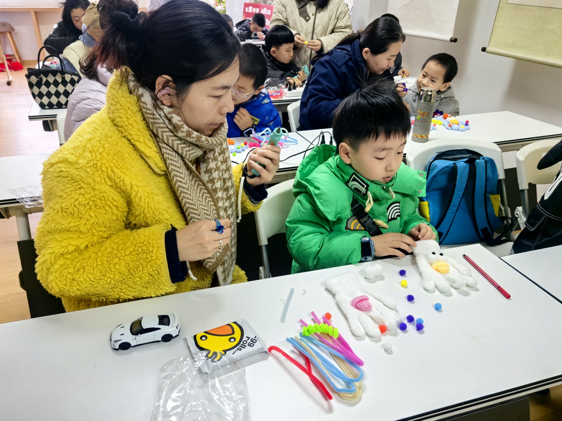 活動(dòng)伊始,指導(dǎo)老師簡(jiǎn)要講解了傳統(tǒng)布藝“拼接點(diǎn)綴、化繁為簡(jiǎn)”的制作理念,并分享了相關(guān)文化傳承故事,增進(jìn)大家對(duì)傳統(tǒng)技藝的理解與認(rèn)同。在隨后的創(chuàng)作環(huán)節(jié),家長(zhǎng)與孩子默契配合,充分發(fā)揮想象力,將彩色扭扭棒、毛球等材料化為立體花紋與靈動(dòng)裝飾?,F(xiàn)場(chǎng)氛圍溫馨融洽,各族家庭在交流技巧、分享創(chuàng)意的過程中感受傳統(tǒng)文化的魅力,讓“同心匯”的溫情紐帶在互動(dòng)中自然聯(lián)結(jié)。