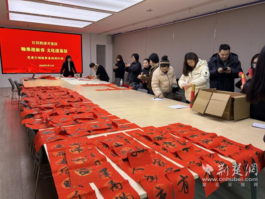 江漢經(jīng)濟(jì)開發(fā)區(qū)開展“翰墨迎新春 文化進(jìn)基層”黨建引領(lǐng)暖新春特別行動(dòng),邀請書法家現(xiàn)場書寫春聯(lián)和“福”字,為園區(qū)企業(yè)員工、新就業(yè)群體和流動(dòng)黨員代表送上節(jié)日祝福,在傳承傳統(tǒng)文化中傳遞組織溫暖。