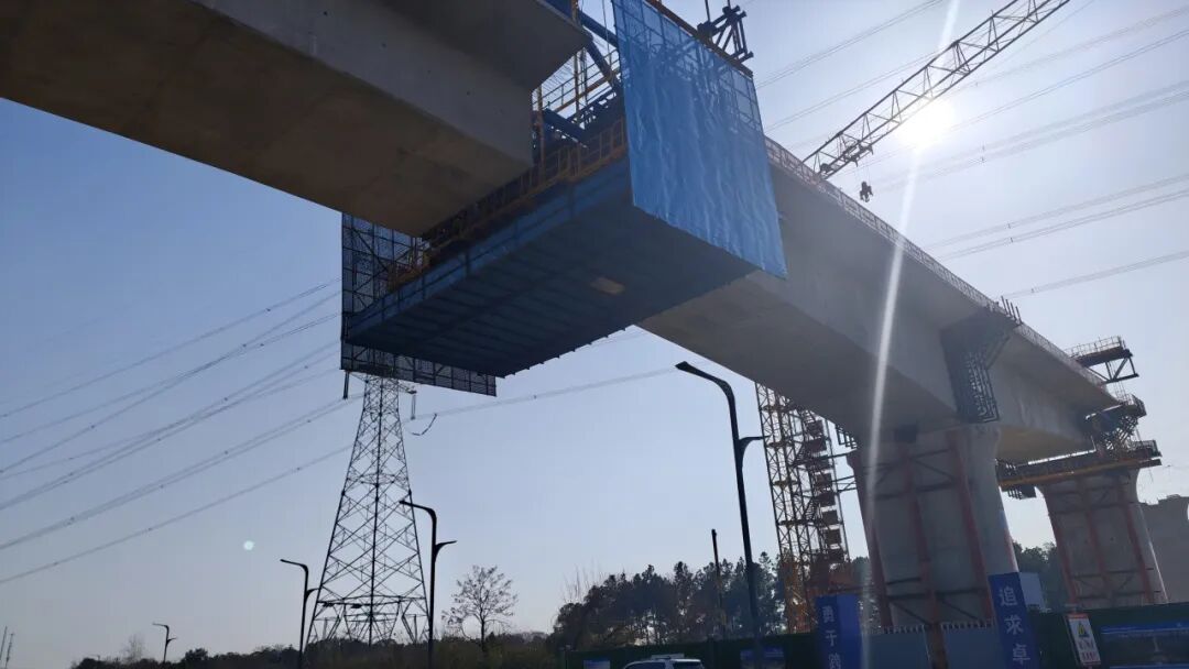 唐旺表示,當(dāng)前重點推進跨川龍大道連續(xù)梁施工,全體人員加班加點、爭分奪秒搶抓工期,全力確??绱埓蟮肋B續(xù)梁三月底順利合攏。