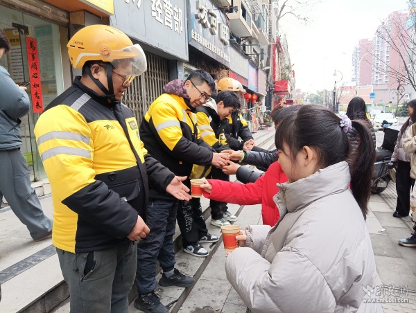 隨后,孩子們化身“小小志愿者”,將一杯杯熱騰騰的姜茶送給驛站里的外賣(mài)騎手、快遞員等新就業(yè)群體,用實(shí)際行動(dòng)踐行諾言,傳遞出書(shū)香少年的責(zé)任擔(dān)當(dāng)。