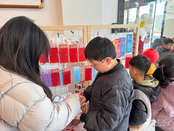 在詩(shī)詞接龍與成語(yǔ)競(jìng)猜環(huán)節(jié),孩子們引經(jīng)據(jù)典、對(duì)答如流,從唐詩(shī)宋詞的婉約豪放到成語(yǔ)典故的博大精深,一句句經(jīng)典在稚嫩的童聲中流淌,國(guó)學(xué)文化的種子也在孩子們心中悄然生根。猜燈謎環(huán)節(jié),一個(gè)個(gè)巧妙融入文學(xué)知識(shí)的謎面,引得孩子們或凝神思索,或歡呼雀躍。射福套圈等趣味游戲更是讓歡聲笑語(yǔ)灑滿(mǎn)書(shū)房,孩子們?cè)谟螒蛑懈惺軅鹘y(tǒng)民俗的獨(dú)特魅力,也收獲了一份份承載祝福的小禮物。