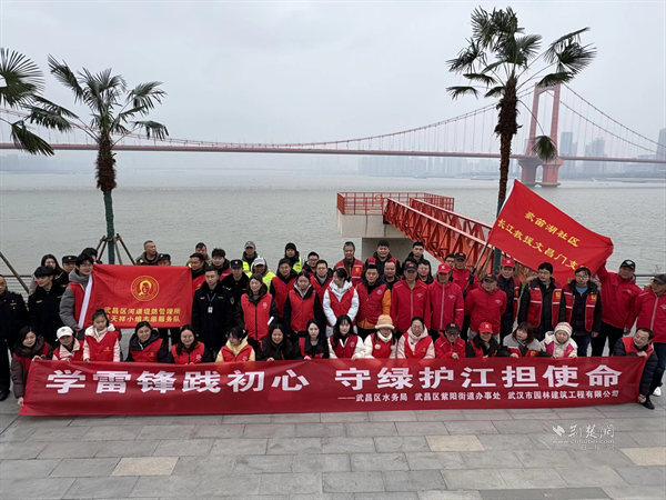 荊楚網(wǎng)(湖北日報網(wǎng))訊(通訊員 呂智敏)在第62個學雷鋒紀念日來臨之際,3月3日,武昌區(qū)紫陽街道聯(lián)合武漢市園林建筑工程有限公司、武昌區(qū)水務局及歌笛湖社區(qū)長江救援隊文昌門支隊,在武昌灣1956公園開展“學雷鋒踐初心,守綠護江擔使命”主題志愿服務活動,以志愿行動傳承雷鋒精神,用實際舉措守護長江生態(tài)。