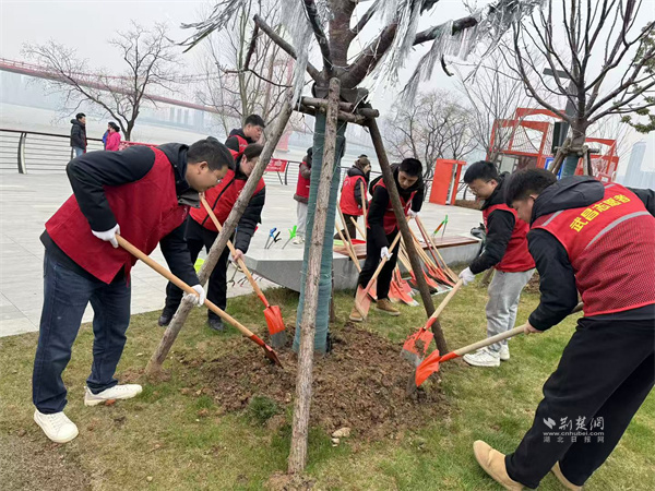 理論學習終要落地于實踐行動。宣講結束后,志愿者們手持夾鉗、垃圾袋等工具,對長江岸邊的垃圾、雜草及水面漂浮物開展地毯式清理,不放過任何衛(wèi)生死角,用雙手讓雜亂的灘涂恢復整潔開闊。恰逢植樹節(jié)將至,志愿者們又揮鍬鏟土、扶苗圍堰、提水澆灌,在指定區(qū)域有序栽種新苗,為長江岸線增添一抹新綠,以實際行動厚植生態(tài)底色,踐行綠色發(fā)展理念。