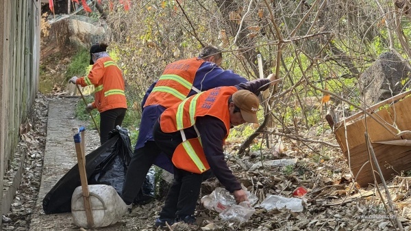 工作人員與志愿者穿梭于陡坡之上、溝壑之間,手持夾鉗、垃圾袋,逐點(diǎn)摸排、逐處清理,不放過任何一個(gè)隱蔽角落。從坡頂?shù)狡碌?,從石縫到樹叢,枯枝落葉、白色垃圾、廢棄雜物被一一清理出來,讓坡地逐漸顯露出原本的清爽模樣。對(duì)于清理出的各類垃圾,現(xiàn)場(chǎng)實(shí)行分類收集、閉環(huán)清運(yùn),確保整治見底見效,堅(jiān)決杜絕二次污染。