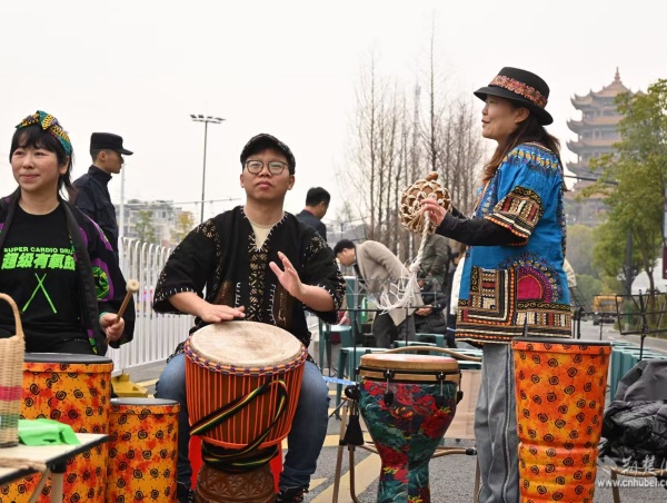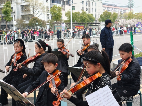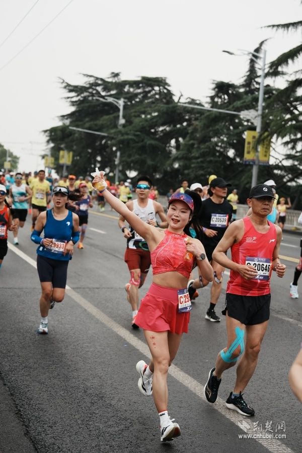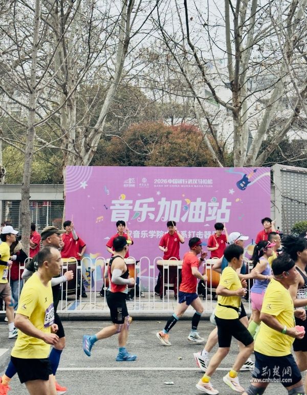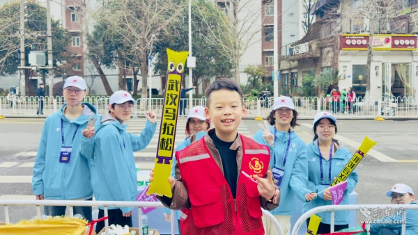 他們手持彩旗、奏響樂器,用旋律和吶喊在賽道旁匯聚成一道道流動(dòng)的風(fēng)景線。鼓聲、樂聲、歡呼聲交織在一起,奏響了春日江城最動(dòng)聽的交響曲。