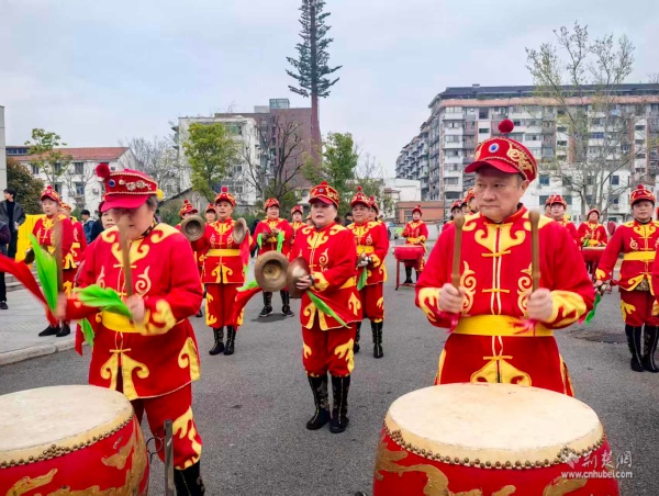 西廠口社區(qū)威風(fēng)鑼鼓隊(duì)為漢馬加油。 通訊員供圖