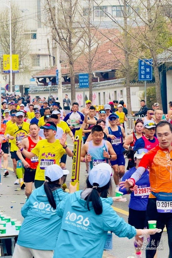 荊楚網(wǎng)(湖北日?qǐng)?bào)網(wǎng))訊(通訊員 周佳穎)3月22日,晨曦微露,2026武漢馬拉松在萬眾期待中鳴槍開跑。3萬名跑者匯聚成奔涌的洪流,穿越一城兩江三鎮(zhèn)四橋五湖,用腳步丈量大江大湖的英雄氣概。當(dāng)奔跑的人流行至千年地標(biāo)黃鶴樓時(shí),迎接他們的,不僅有巍峨的名樓,更有黃鶴樓街道全體工作人員、社區(qū)工作者與居民志愿者們用真誠(chéng)與汗水鋪就的“最美加油路段”。黃鶴樓街道用最質(zhì)樸的加油吶喊、最暖心的服務(wù)保障,與跑者共同完成了一場(chǎng)春日里的“雙向奔赴”。