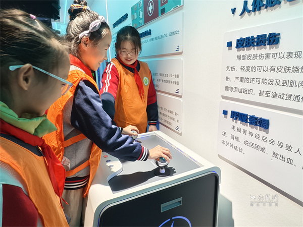 互動體驗環(huán)節(jié),孩子們在志愿者的帶領下有序參觀家庭電路模型、電力沙盤。大家輪番參與觸電、高空墜落等模擬體驗,挑戰(zhàn)心肺復蘇、滅火器滅火等應急實操,在趣味互動中深化對安全知識的理解。