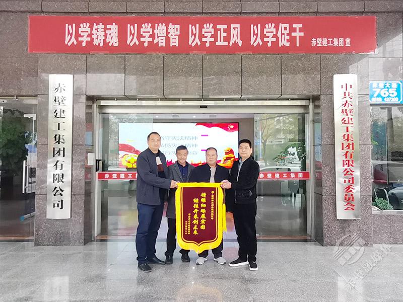 11月20日,神山鎮(zhèn)鐘鳴村村支書易正軍帶領(lǐng)村委會(huì)成員及村民代表,將一面寫著“精雕細(xì)琢展宏圖,繼往開來(lái)創(chuàng)未來(lái)”的錦旗送到赤壁建工集團(tuán),以表達(dá)他們對(duì)建工集團(tuán)水建公司在該村高標(biāo)準(zhǔn)農(nóng)田改造工作中,所付出的辛勤勞動(dòng)的感謝之情。