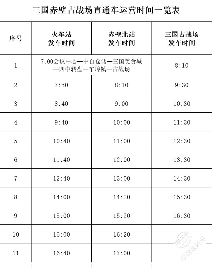 線路:抵站后可選擇旅游直通車或打車至三國赤壁古戰(zhàn)場