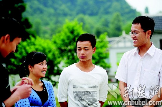徐本禹與曾教過(guò)的學(xué)生王志華、王敏和高家毅在一起。